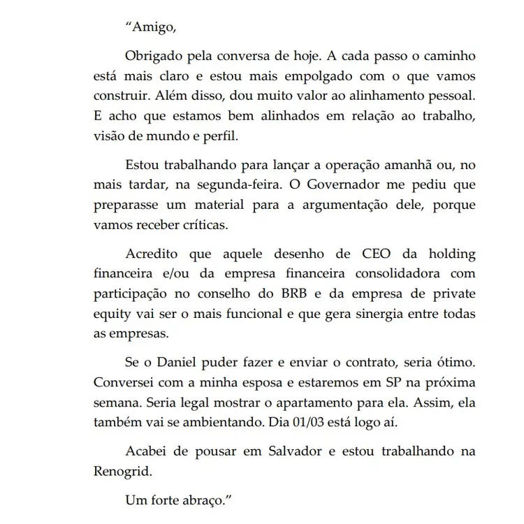 As mensagens de WhatsApp interceptadas pela Polícia Federal na Operação Compliance Zero revelam uma relação de extrema proximidade e uma "comunhão de desígnios" criminosos entre o ex-presidente do BRB, Paulo Henrique Costa, e o empresário Daniel Vorcaro. O conteúdo das conversas, que inclui des