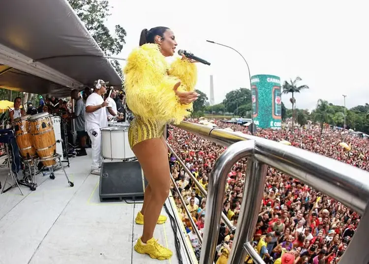 Ivete Sangalo arrasta multidão e agita megabloco no pré-Carnaval de São Paulo A cantora Ivete Sangalo subiu ao trio pontualmente, às 9 horas da manhã. Mais um pouquinho antes, já agitou o público. A Ivete apareceu, foi dos dois lados do trio, cumprimentou todos os foliões.